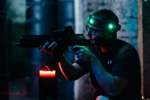 Tak jak pisaliśmy wcześniej – na większości aren, szczególnie wewnętrznych, lepiej sprawdzi się broń z optyką podstawową (prism). Zasięg strzału jest w zupełności wystarczający, a uniwersalność karabinów jest dużym atutem sprzętu. Sprawnie będą się nim posługiwać zarówno dzieci jak i dorośli. Oczywiście na bliskich odległościach również trzeba się postarać o dokładne wycelowanie w opaskę, na bardzo blisko – w konkretne czujniki, ale tak czy inaczej, nie będzie to sprawiało takich trudności jak przy optyce parallax.